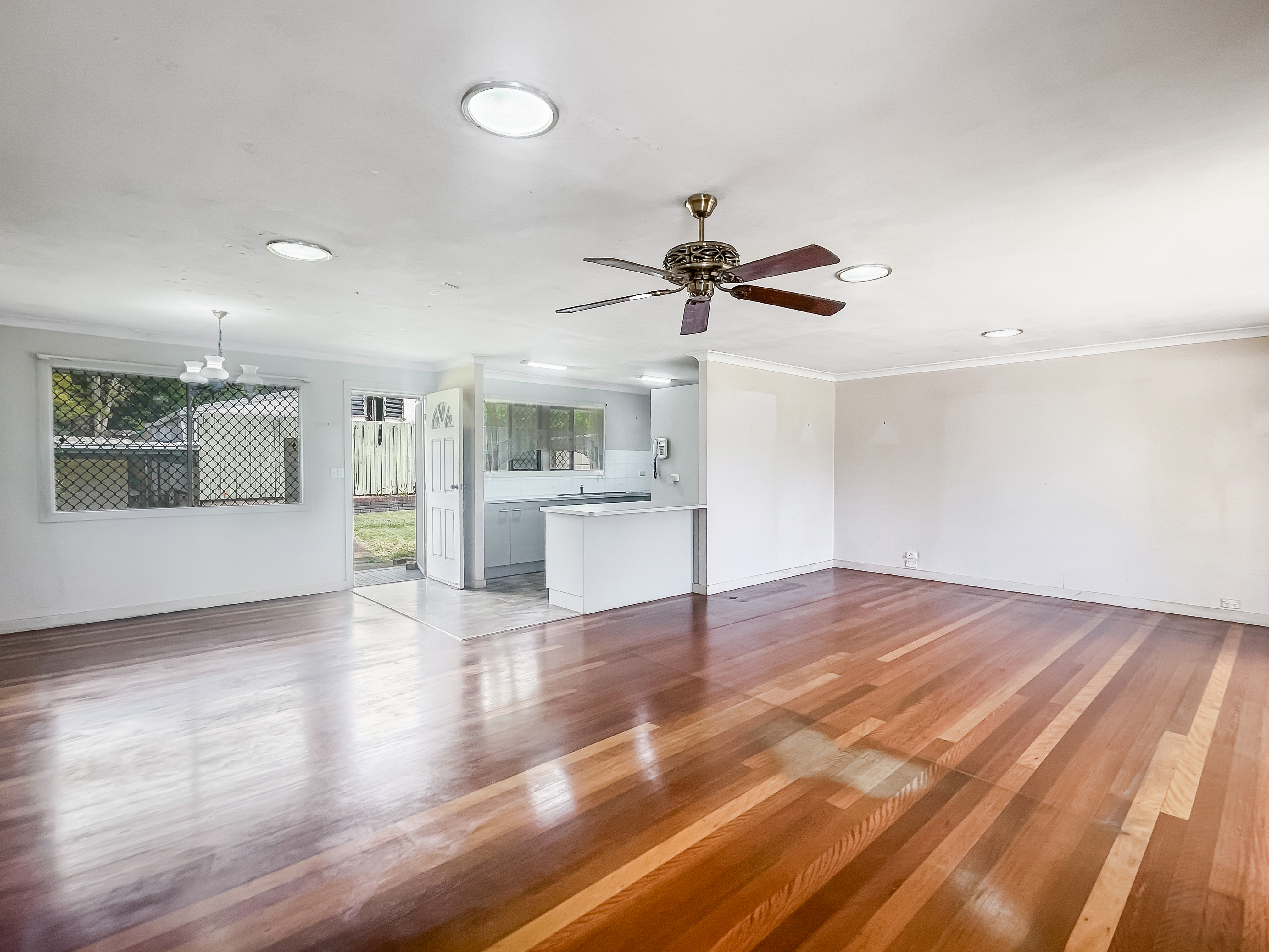- Open plan living and dining area with country style kitchen and hardwood polished floors